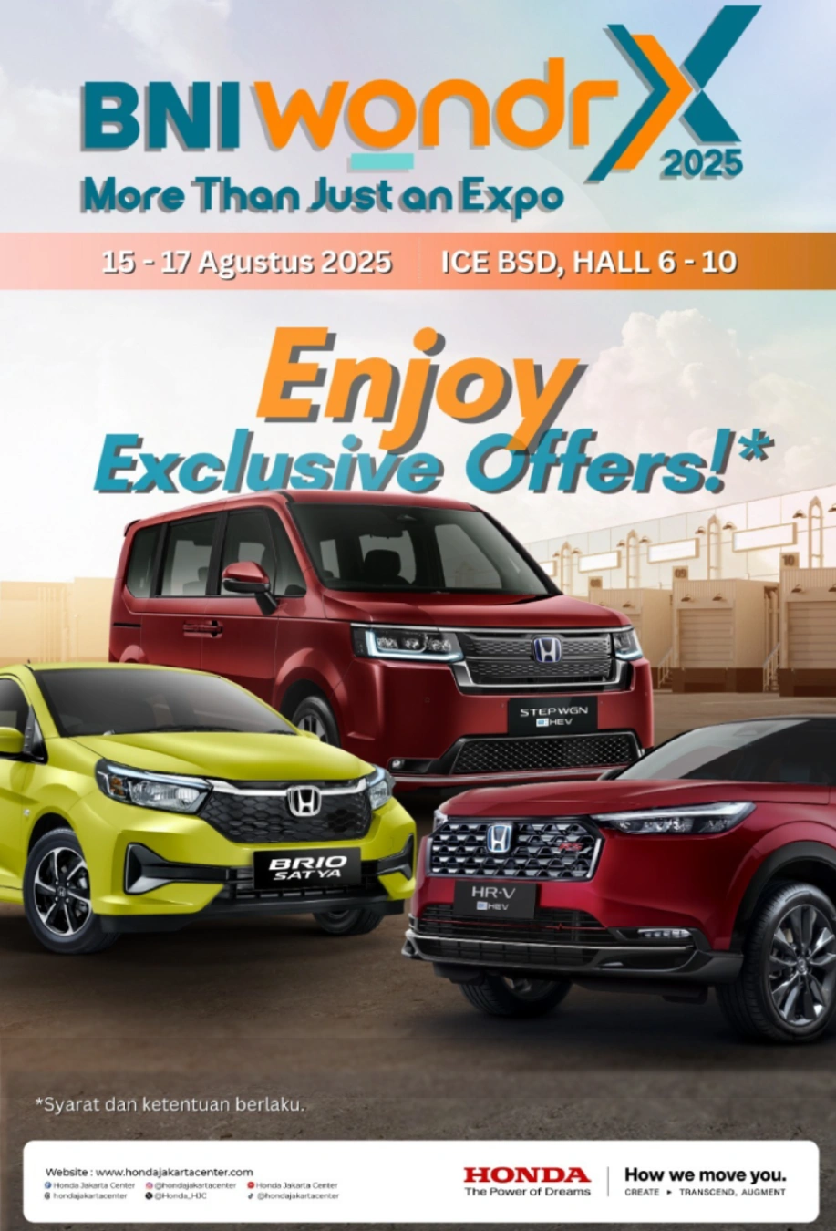 Hadirnya Honda dalam BNI wondrX adalah kesempatan emas bagi calon konsumen untuk mendapatkan mobil impian Honda dengan penawaran menarik.